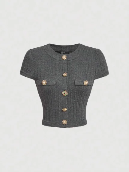 SHEIN MOD Black Metal Button Short Sleeve T-Shirt,Back To School Clothes